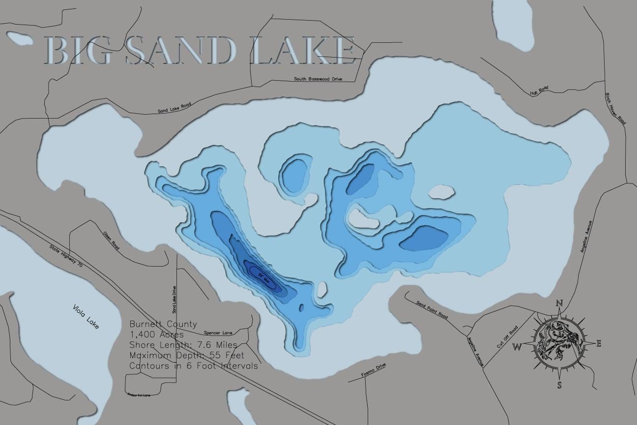 Depth Map of Big Sand Lake โ EvergreenLodgeMN.com