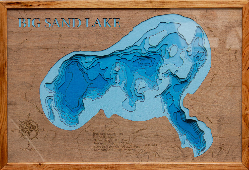 Big Sand Lake 3D Custom Wood Map โ Lake Art LLC