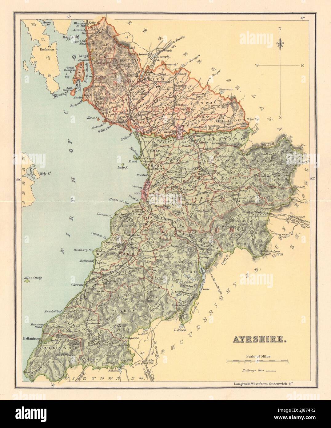 AYRSHIRE antique county map. Parishes. Ayr Kilmarnock. Scotland