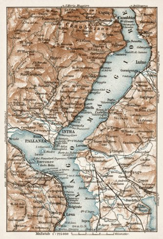 Maggiore Lake and d´Orta Lake nearer environs Map, 1913 by Waldin